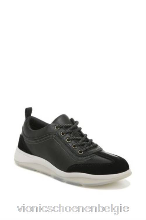 Vionic Nyla zwarte getrommelde leren veterschoenen ZND81639Vionic belgie